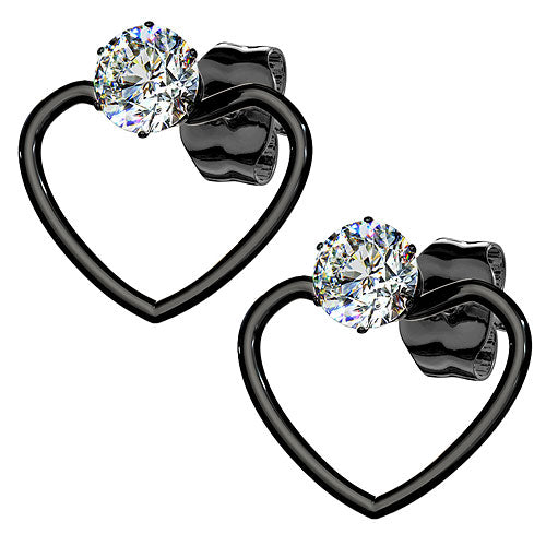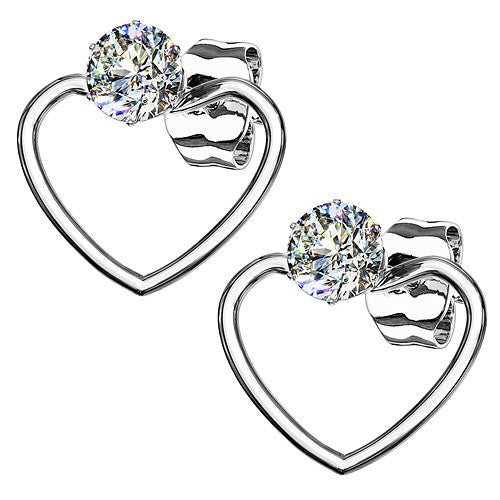 1 Paar Edelstahl Schmuck Herz Ohrstecker, Ohrringe mit Kristall