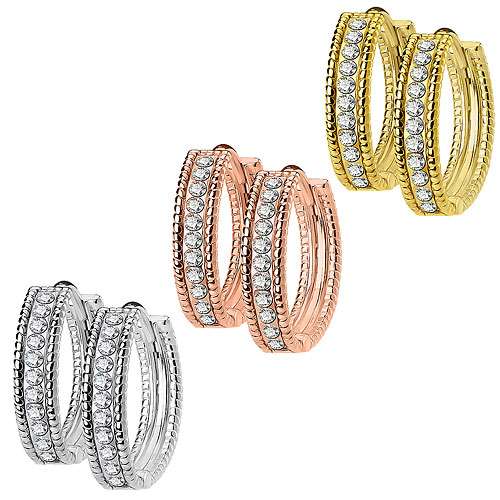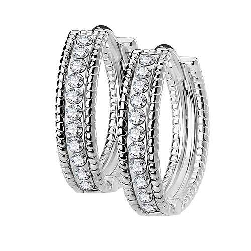 1 Paar Klapp Ohrringe Creolen Edelstahl Perlen Rand mit Kristallen