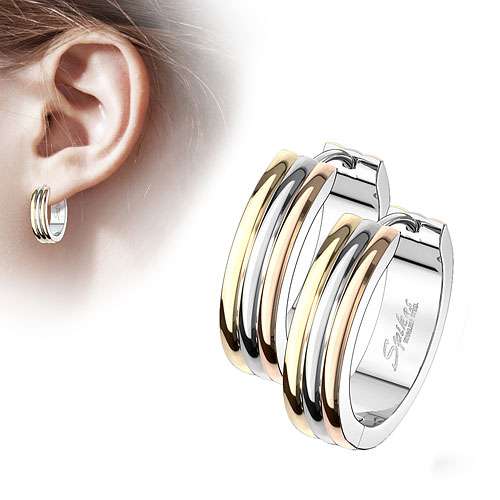 1 Paar Ohrringe Edelstahl Creolen dreifarbig mit Scharnier