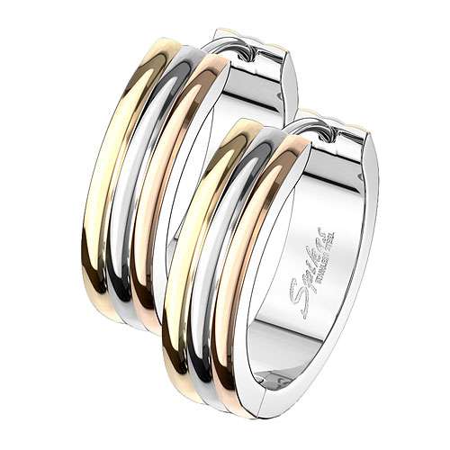 1 Paar Ohrringe Edelstahl Creolen dreifarbig mit Scharnier