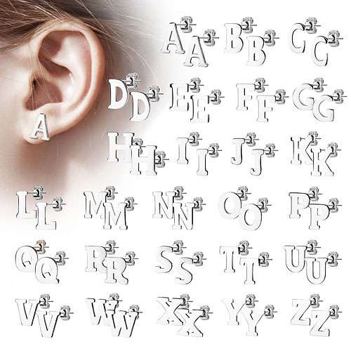 1 Paar Ohrstecker Buchstaben Alphabet Silbern Edelstahl