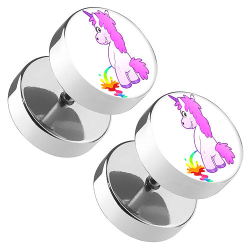 1 Paar Picture Ohr Fake Plug Motiv pinkelndes Einhorn Comic