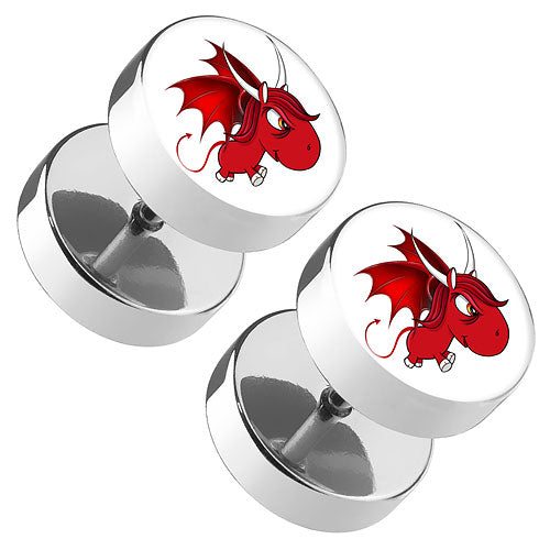1 Paar Picture Ohr Fake Plug Motiv Teufel Einhorn Comic