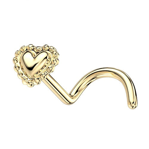 585 Gold 14 Karat Nasenstecker Nasenring Piercing herzförmiger Spitze Perlenrand