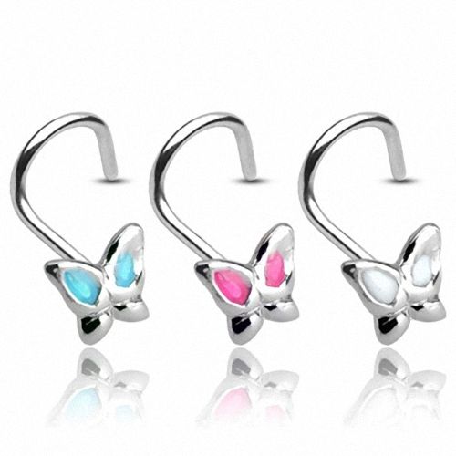 925 Silber Nasenpiercing gebogen Schmetterling