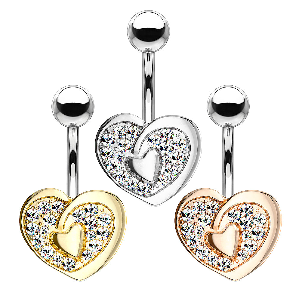 Bauchnabelpiercing Banane Stecker Herz mit Kristall Strass Inlay