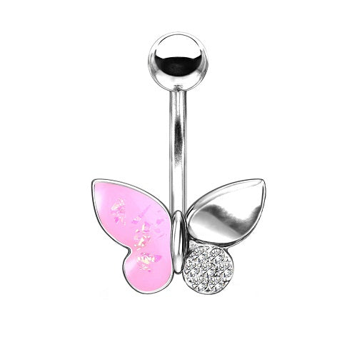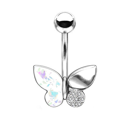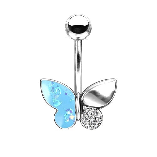 Bauchnabelpiercing Banane Stecker Schmetterling mit Opal und Kristallen