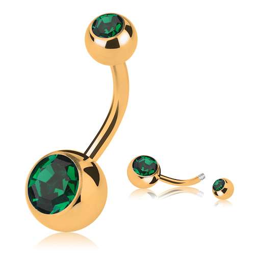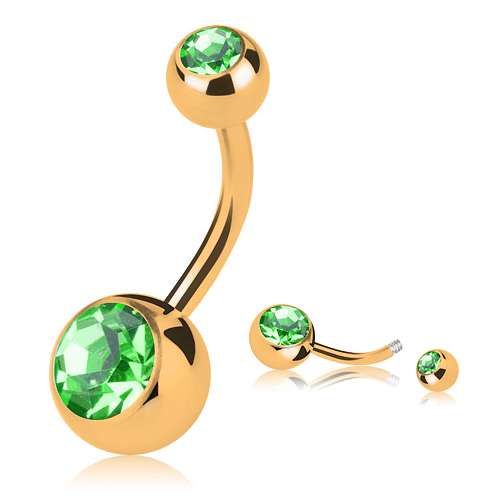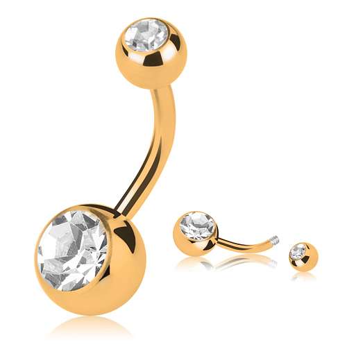Bauchnabelpiercing Banane Stecker vergoldet Doppel Kristall