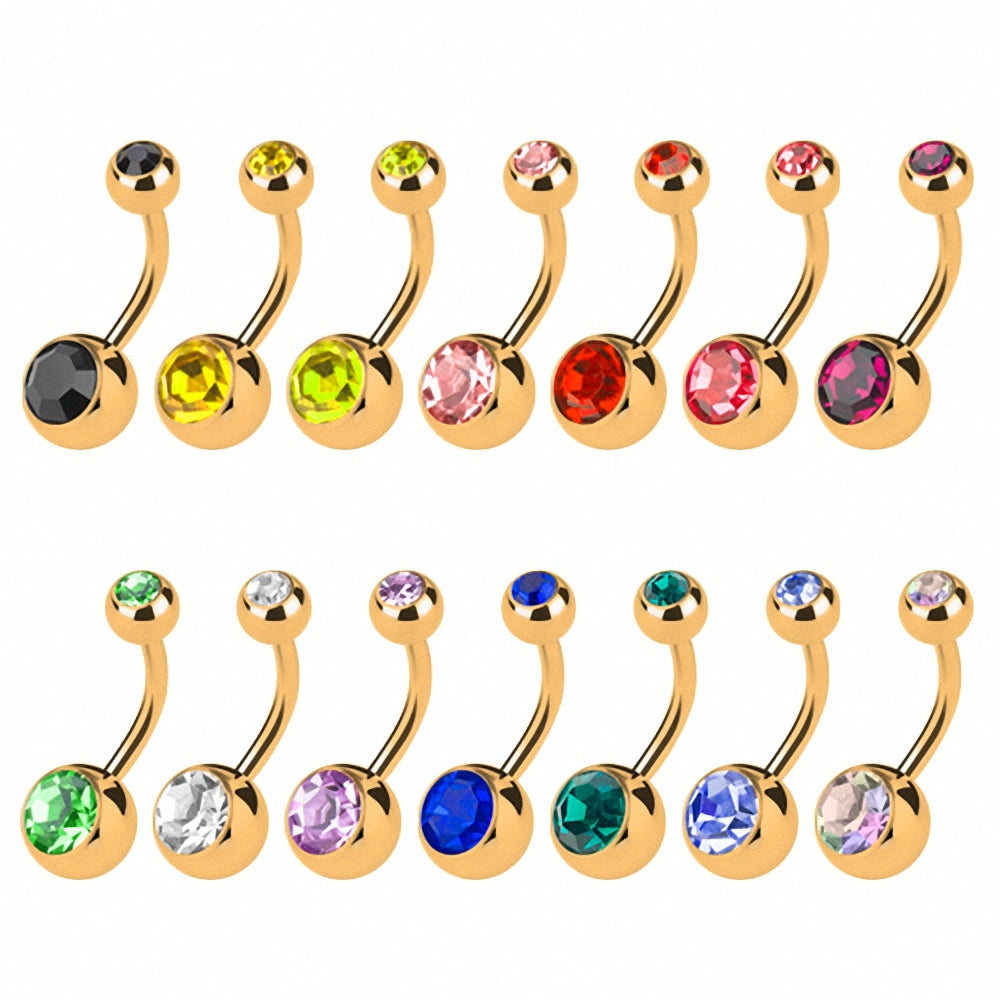 Bauchnabelpiercing Banane Stecker vergoldet Doppel Kristall