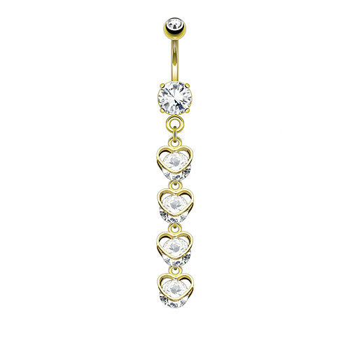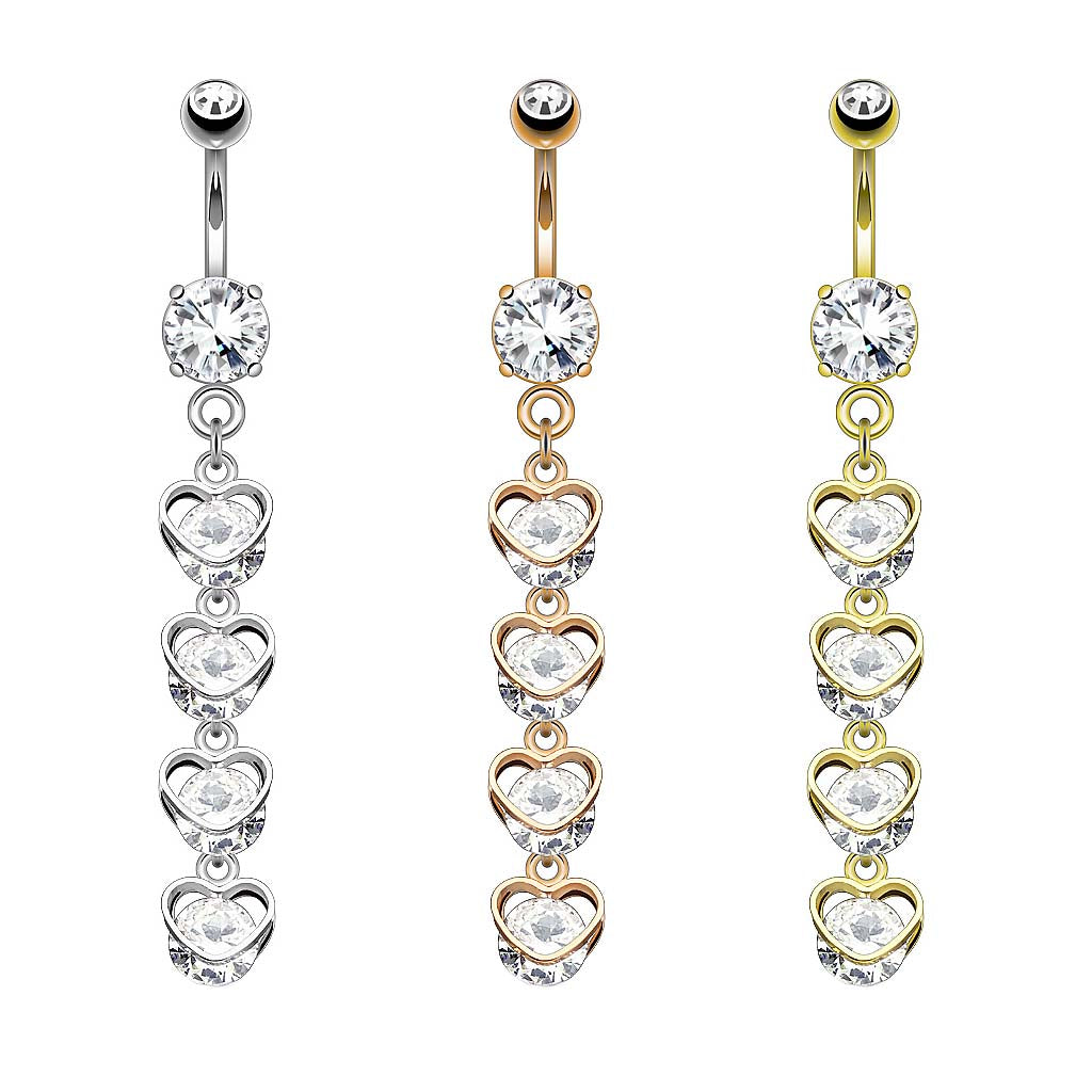 Bauchnabelpiercing mit 4 Herzen in einem Kristall Ketten Anhänger