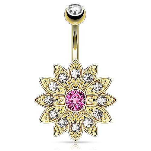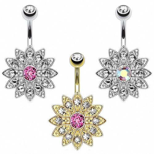 Bauchnabelpiercing mit Kristallen besetzte Top Down Blume