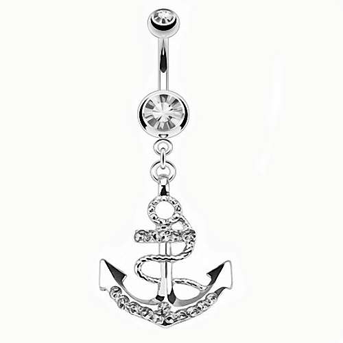 Bauchnabelpiercing Schmuck Kristall Stecker mit Seefahrt Anker Anhänger