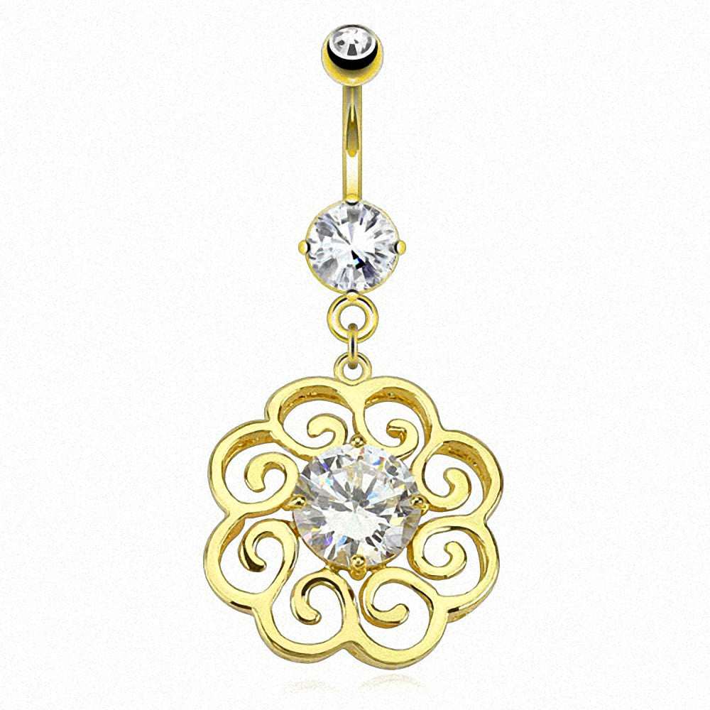 Bauchnabelpiercing Schmuck Stecker vergoldet Tribal Kristall Anhänger