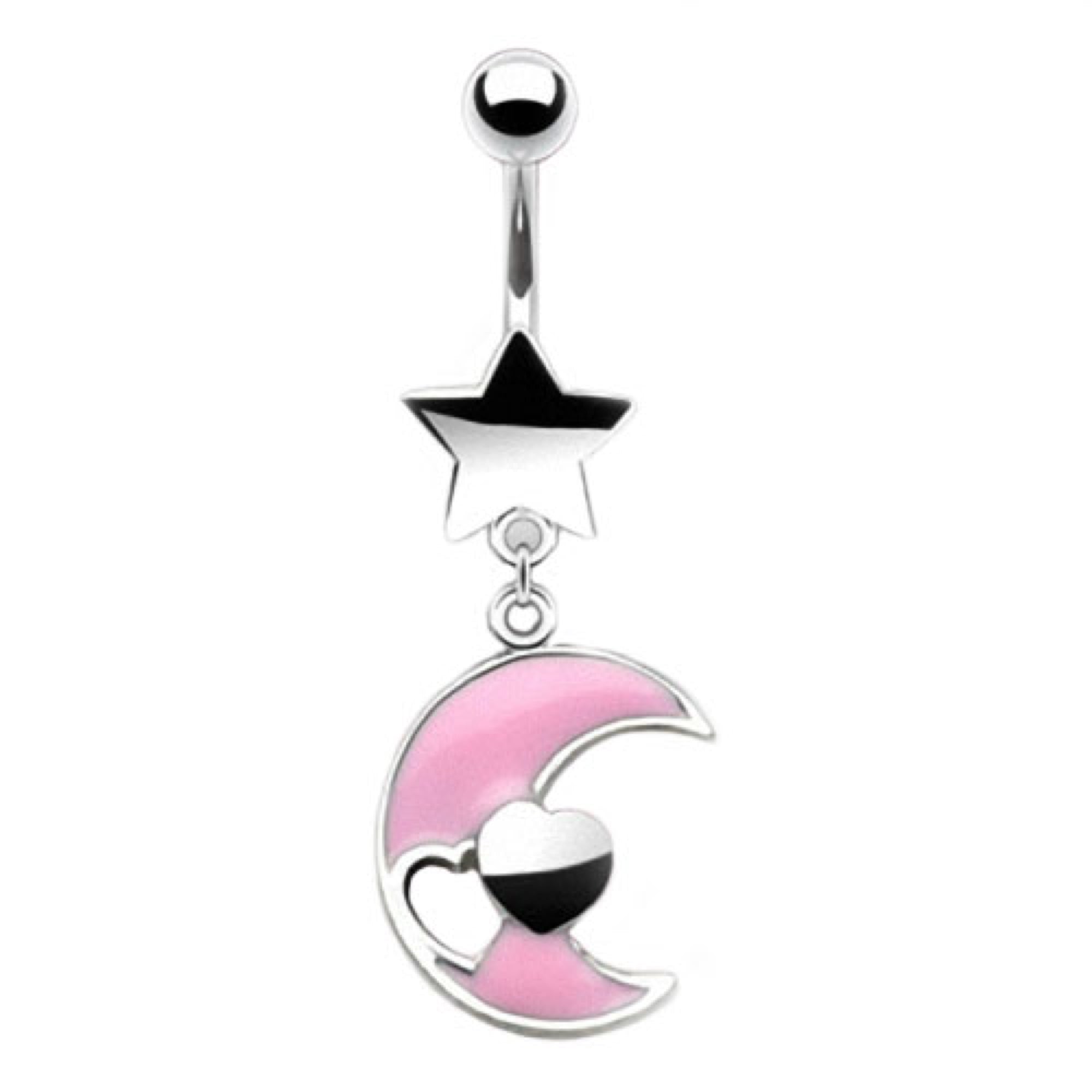 Bauchnabelpiercing Stecker mit Stern und Halbmond Anhänger Rosa