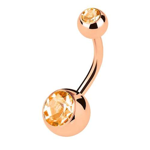 Bauchnabelpiercing Stecker Rosegold vergoldet Doppel Multi Kristall