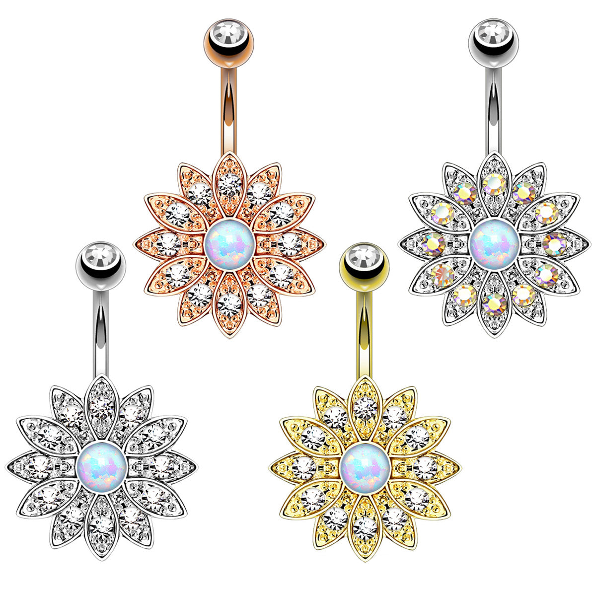 Bauchnabelpiercing Top Down Blume mit Kristallen und Opal