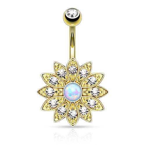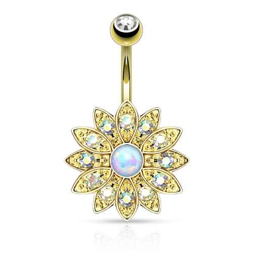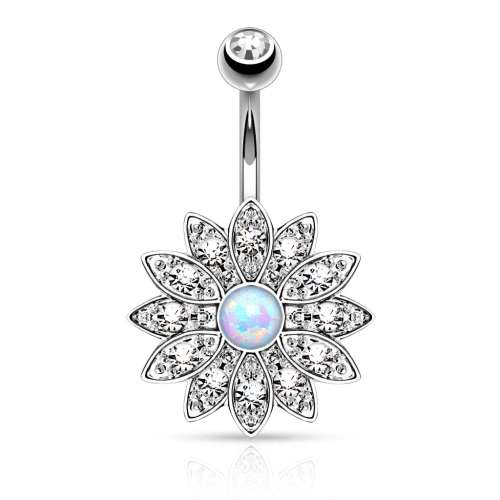 Bauchnabelpiercing Top Down Blume mit Kristallen und Opal