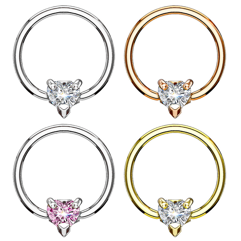 BCR Tragus Ohr Septum Piercing Klemmring Kristall Herz
