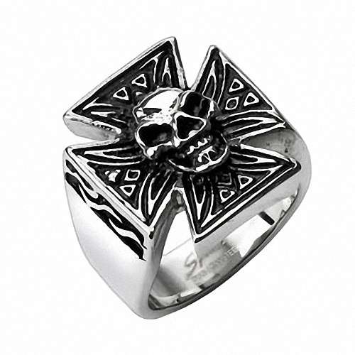 Biker Ring Totenkopf auf Eisernes Kreuz Rocker Siegelring