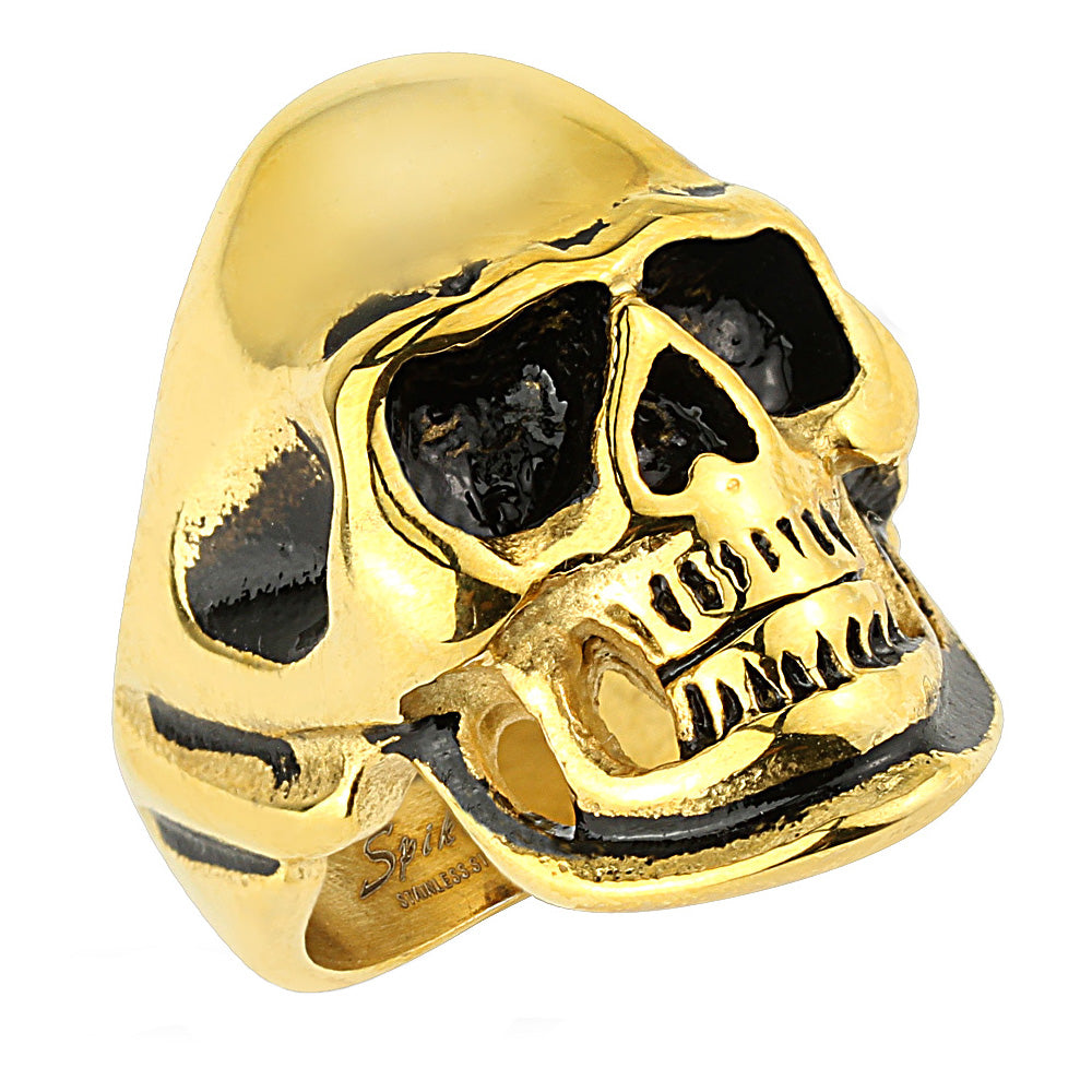 Biker Ring Totenkopf Edelstahl vergoldet Schwarz Massiv