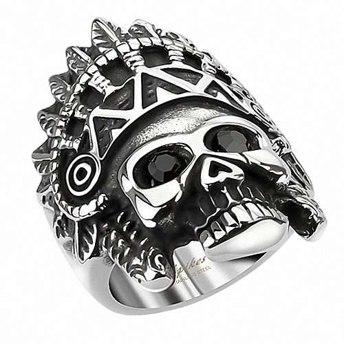 Biker Rocker Ring Apache Häuptling Schmuck Totenkopf schwarze Augen