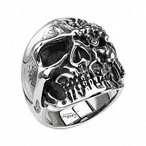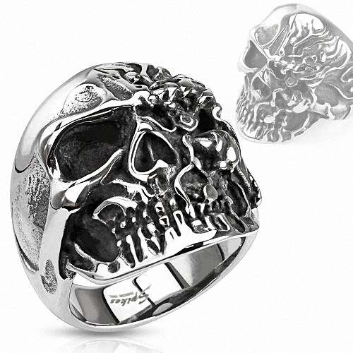 Biker Rocker Ring Totenkopf mit 2 Gesichter Terminator