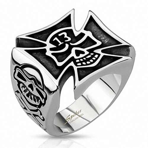 Biker Totenkopf Ring Eisernes Kreuz Lucky 13
