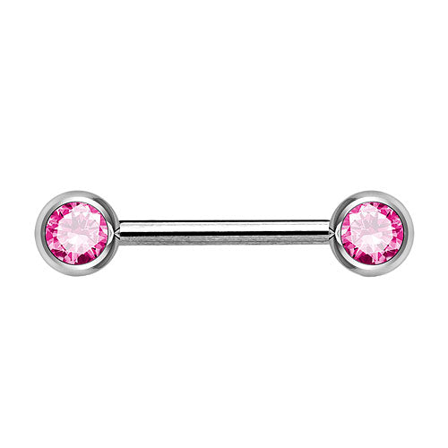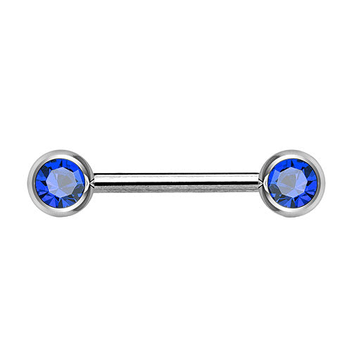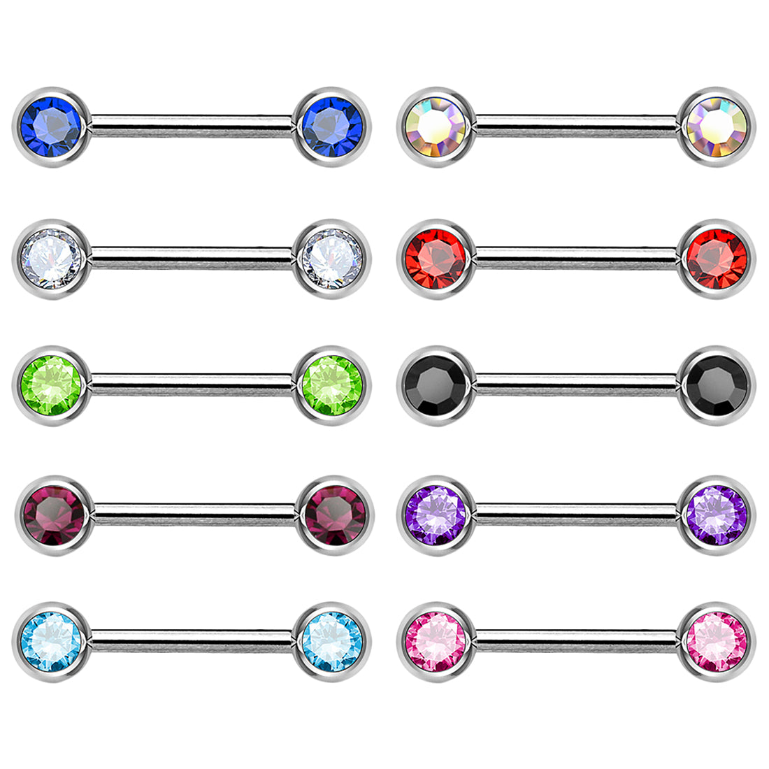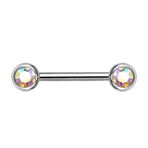Brust Intimpiercing Hantel Doppel Front Kristall Kugel flach