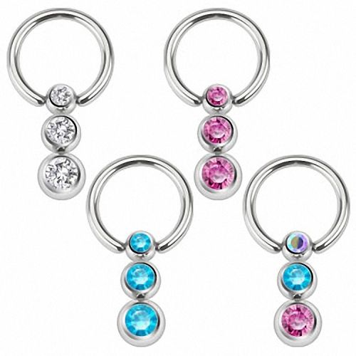 Brust Intimpiercing Klemm Ring Triple Kristall