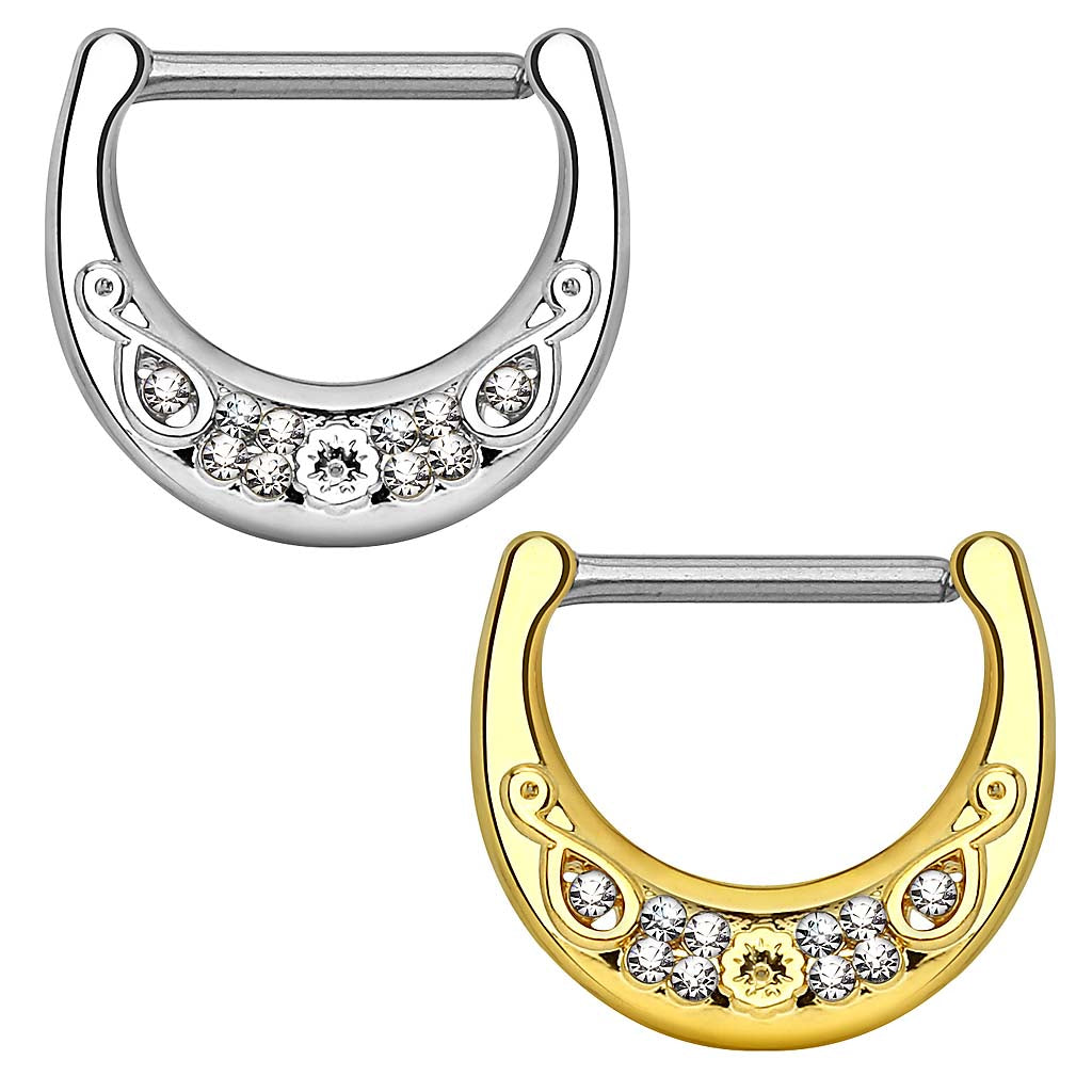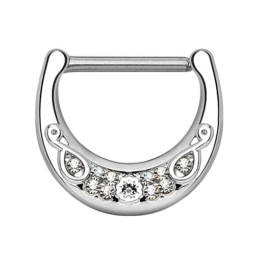 Brustwarzen Intimpiercing Clicker mit Filigran besetzten Kristallen