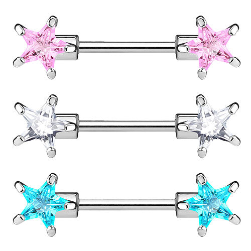 Brustwarzenpiercing Barbell 2 Kristall Sterne