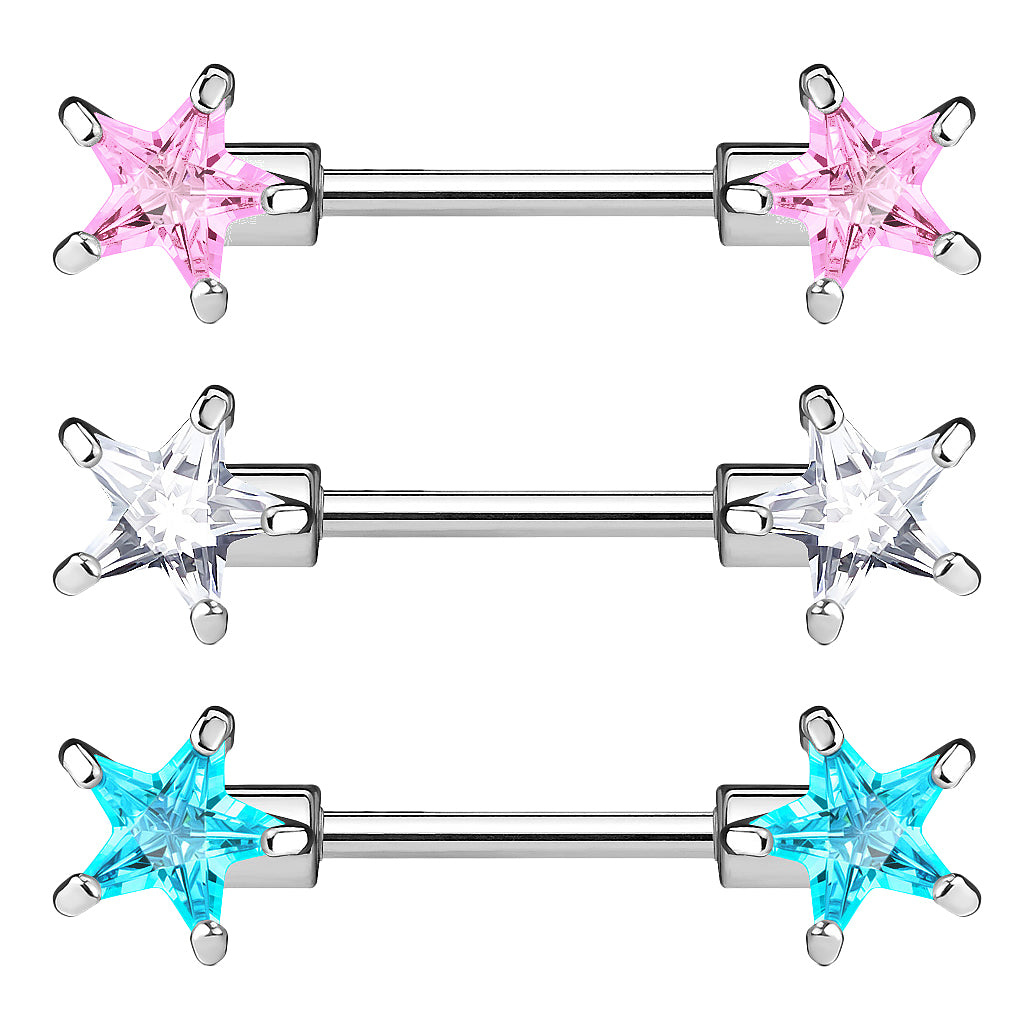 Brustwarzenpiercing Barbell 2 Kristall Sterne