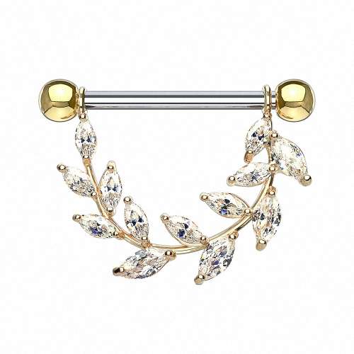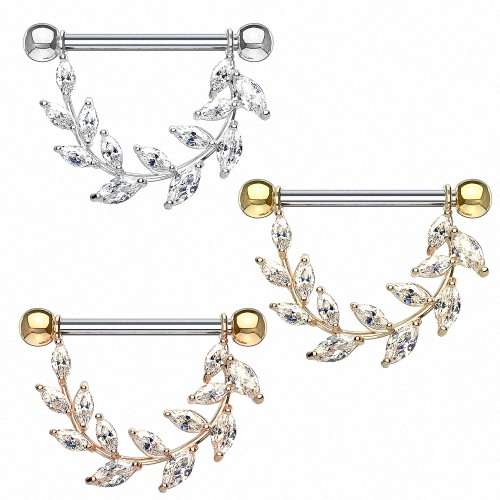Brustwarzenpiercing Barbell Kristall Farn Blatt Anhänger filigran