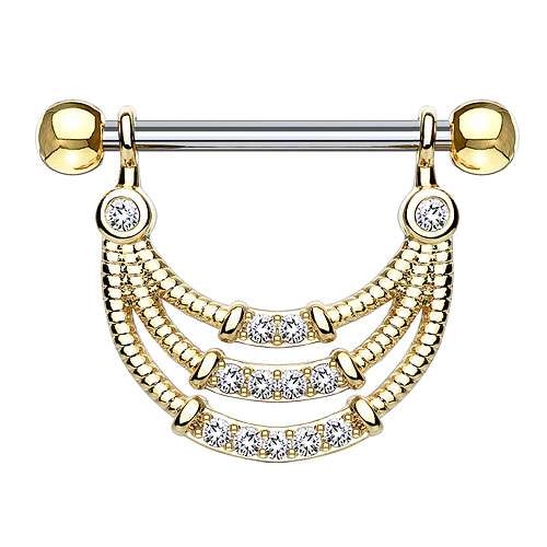 Brustwarzenpiercing Barbell Kristall Triple Seil Anhänger filigran