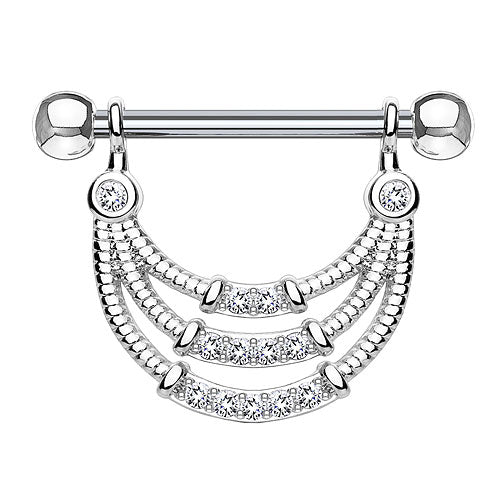 Brustwarzenpiercing Barbell Kristall Triple Seil Anhänger filigran