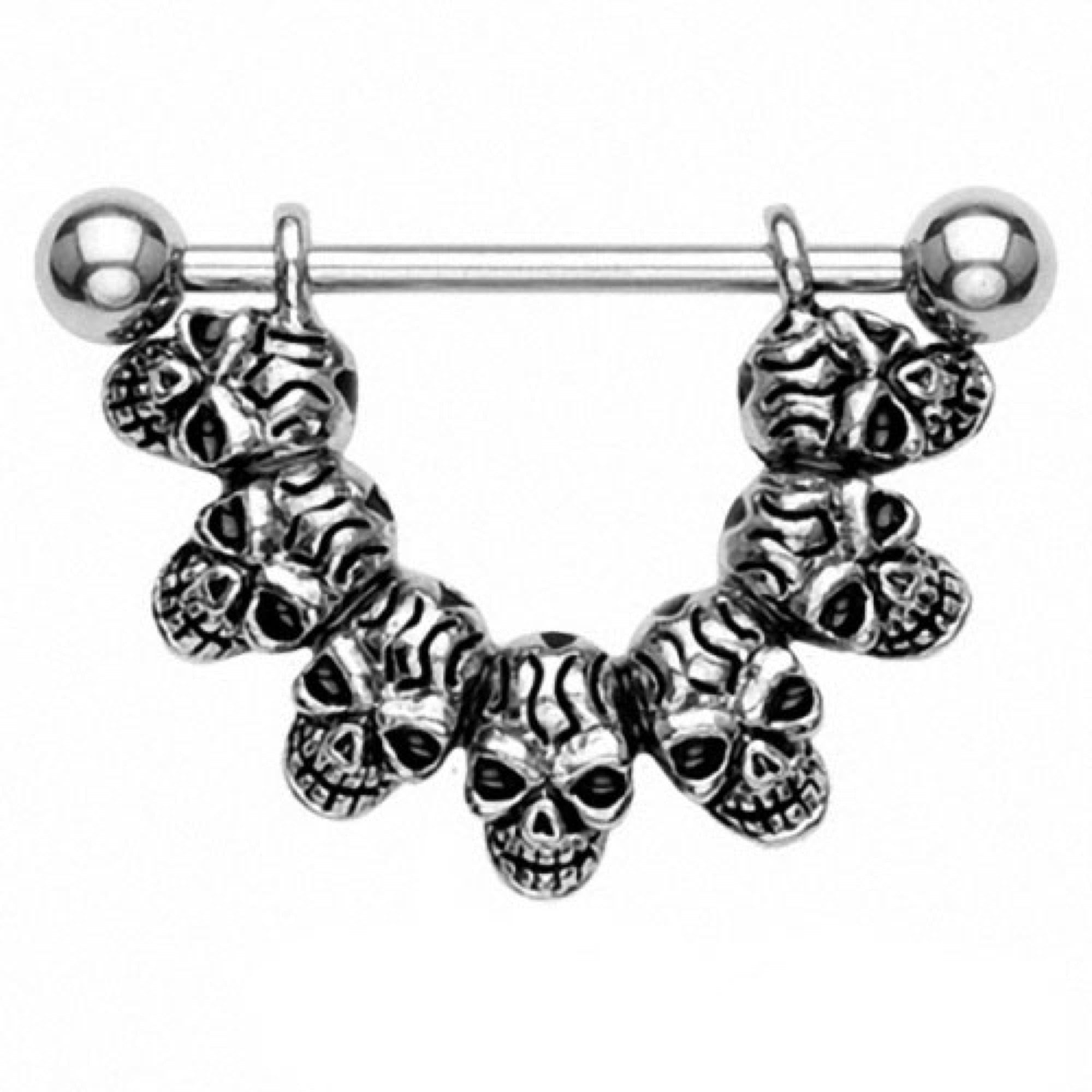 Brustwarzenpiercing Barbell Stab mit Totenköpfen