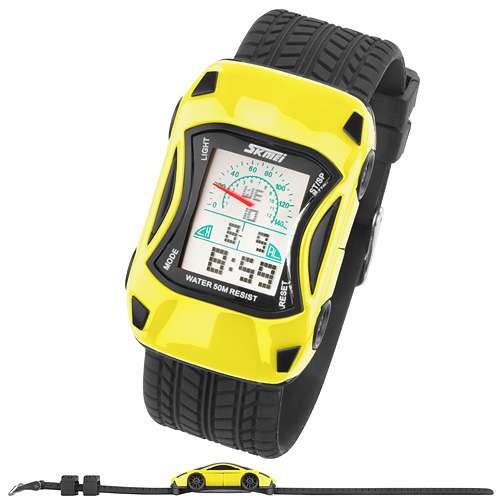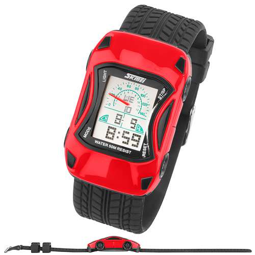Bunte Silikon Kinder Auto Armbanduhr Digital Quartz Alarm,Stoppuhr