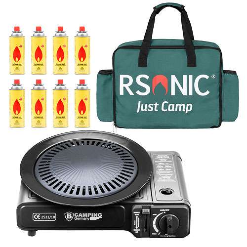Campingkocher Outdoor Gaskocher BBQ + Grillplatte + Tragetasche + Koffer + Gas