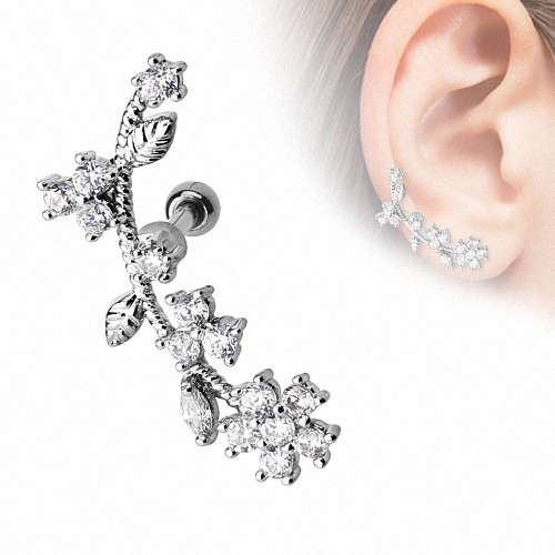 Cartilage Ohr Piercing Knorpel Stecker mit Kristall Blumen