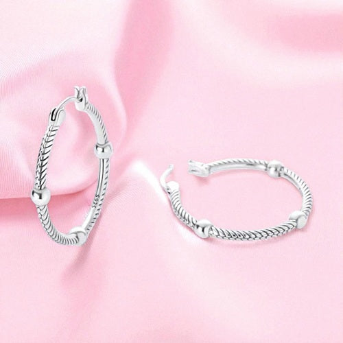 Diese eleganten Creolen aus 925 Sterling Silber vereinen klassische Form mit modernem Design. Das fein geflochtene Muster und drei polierte Kugeln verleihen dem Schmuckstück eine besondere Struktur und edlen Glanz. Dank der sorgfältigen Verarbeitung liegen die Ohrringe angenehm am Ohr und überzeugen durch hohen Tragekomfort.