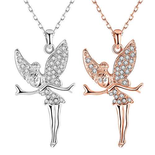 Damen Halskette mit Kristall besetzten Elfen Engel Anhänger im Schmucketui