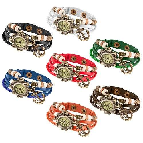 Damen Lady Vintage Retro Quarz Armbanduhr mit Anker
