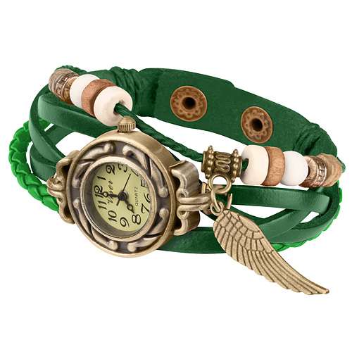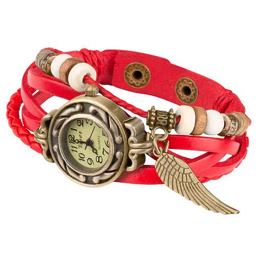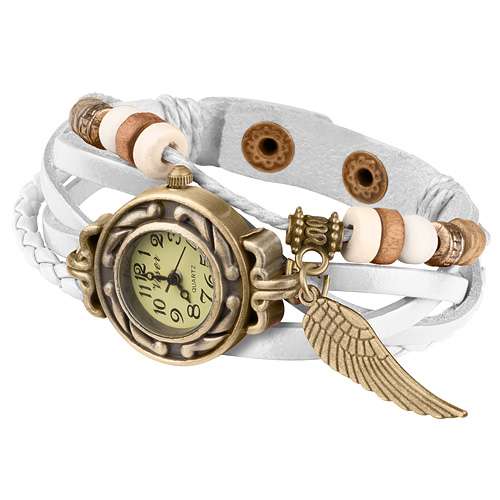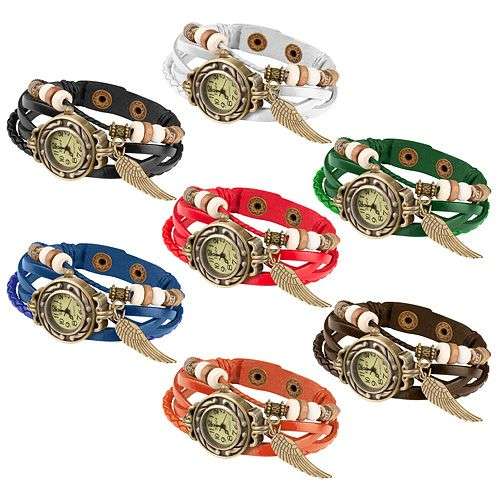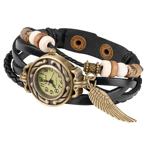 Damen Lady Vintage Retro Quarz Armbanduhr mit Flügel