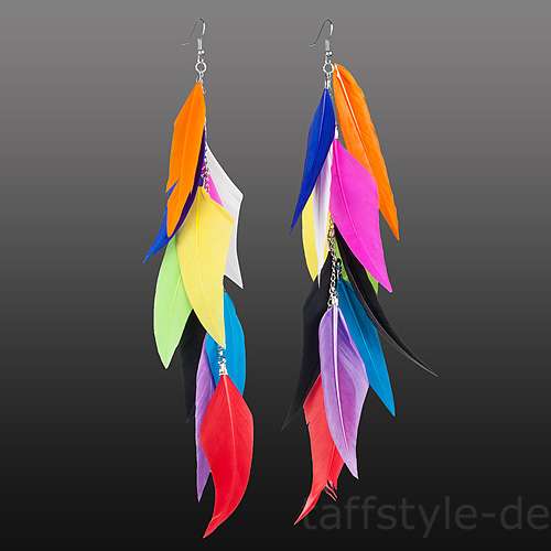 Damen Ohrringe Feder Ohrhänger Vintage Style Bunt
