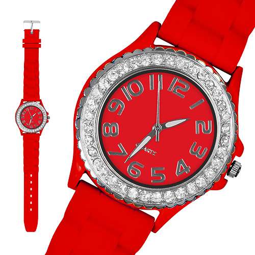 Damen Silikon Armbanduhr Kristall Uhr Bling Strass