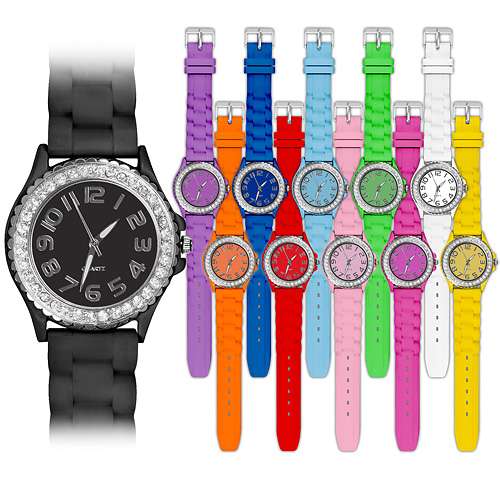 Damen Silikon Armbanduhr Kristall Uhr Bling Strass