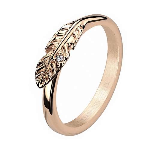 | Design: | Dieser filigrane Damen Ring aus Rose vergoldeten Edelstahl und einem kleinen Kristall auf einem Blatt macht zu jedem Anlass eine gute Figur. Die hochglanz polierte goldene Oberfläche reflektieren wunderschön das Licht und macht diesen Ring zum absoluten Hingucker. |