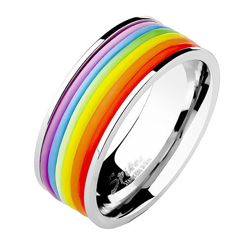 Edelstahl Ring Silber poliert Regenbogen Rainbow Silikon Streifen