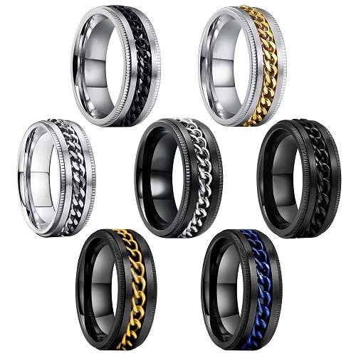 Edelstahl Ring Spinner Spinning Drehring bewegliche Kette Partner Fingerring