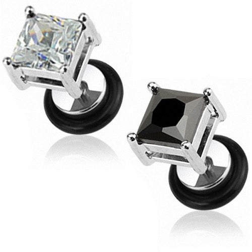 Fake Ohr Plug Kristall Quadrat Ohrstecker